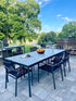 Upgrade your outdoor dining experience with the Kiera Rope Dining Set. This set includes a table and 6 chairs, each featuring a stylish and durable rope woven seat and back. Made with aluminum, this patio furniture is perfect for any outdoor gathering. Enjoy in comfort and style!